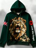 Men's British Lion Print Drop-Shoulder Hoodie (No Pockets)