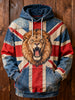 Men's Vintage England Flag Lion Oversized Drop-Shoulder Hoodie with Pockets