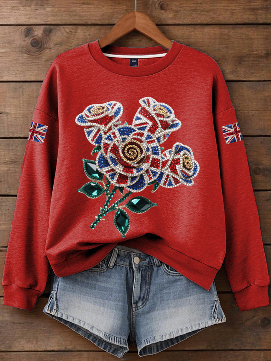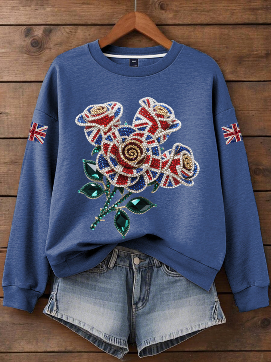 Women's British imitation diamond hot-drilling Print Sweatshirt