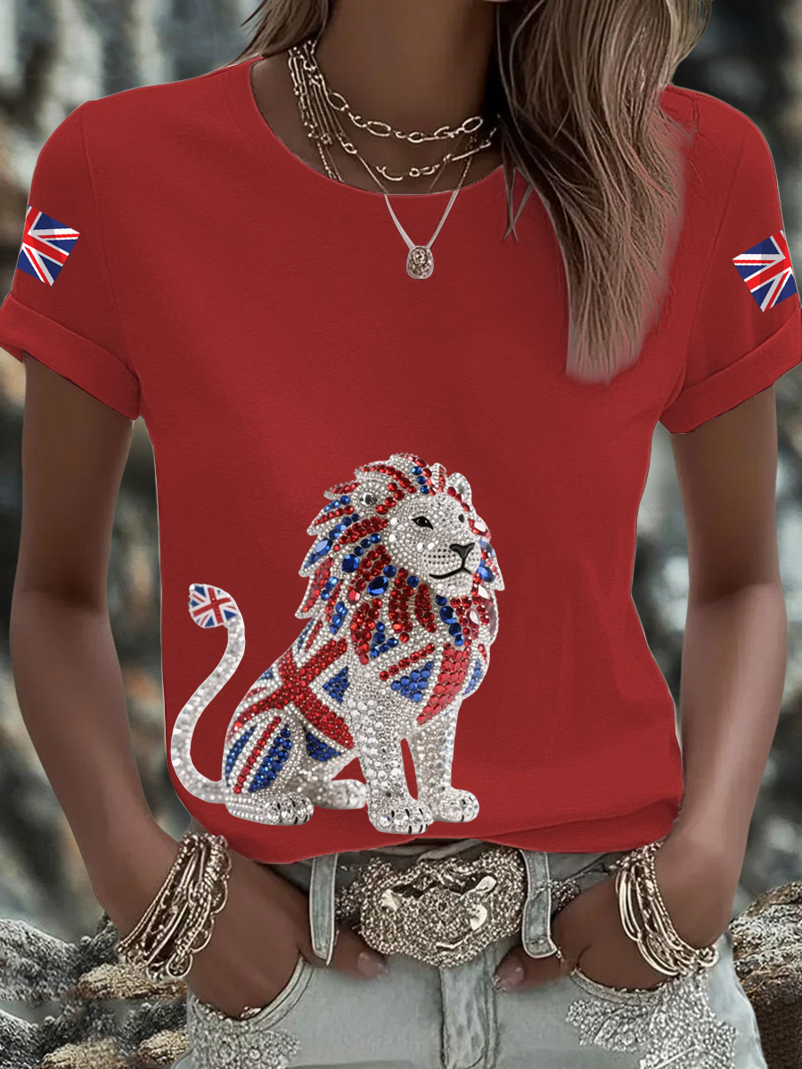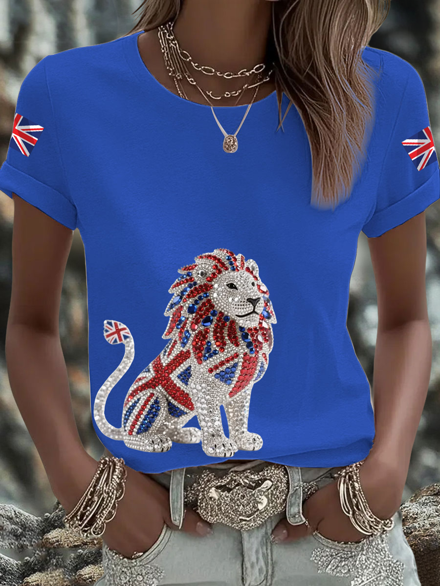 Women's British imitation diamond hot-drilling Printed short-sleeved T-shirt